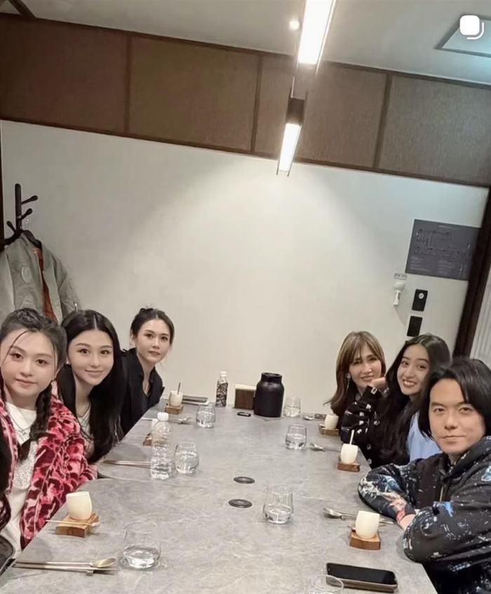 这次聚会不只是两位妈妈和两位女儿。 邱淑贞的次女沈日也低调出席了,她没有参与那张著名的四人合照,但在吃饭时的合影里露了脸。 当天她身穿红色迷彩外套,扎了两条马尾辫。