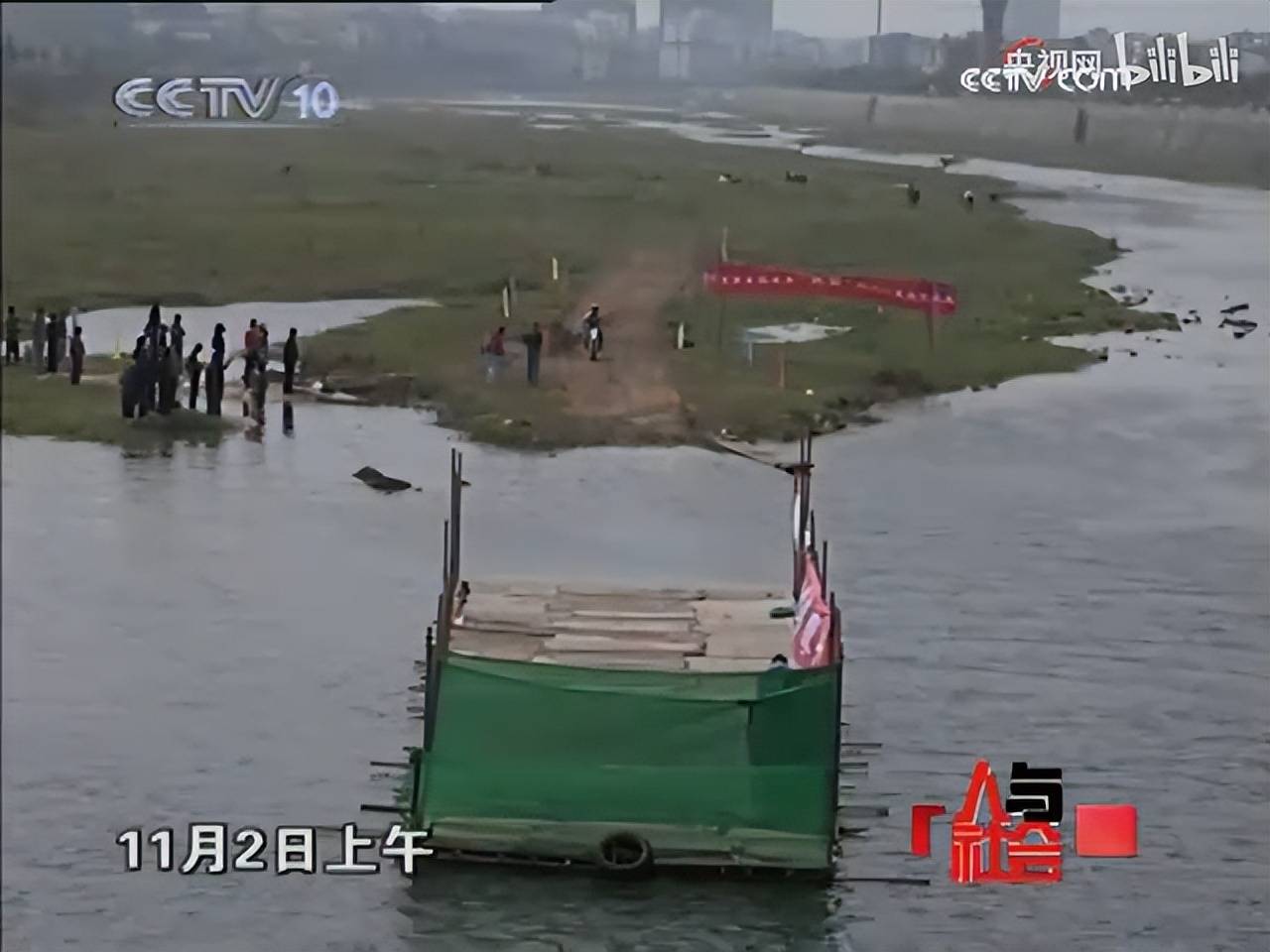 11点30分,张雪驾着他改装的这辆摩托车一跃而下。他需要漂行26米到达河的对岸,才算挑战成功,但在距离河岸还有10米的地方,摩托车却重重摔倒了。