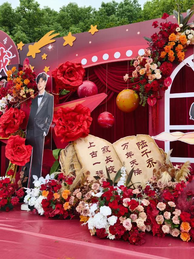 另外,15个现代造型花架和8个红色渐变色拼字花架也增添了喜庆的气氛,拼字花架上的字样祝愿任嘉伦开机顺利。会会还贴心地准备了近一千份点心和水果,供参加开机活动的粉丝享用,让大家充满活力地享受这一天。