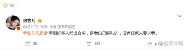 眼看争议发酵,当晚,张艺凡本人在微博发文回应:“看到好多人都误会啦,是我自己脱鞋的,没有任何人要求我。”这句话直接澄清了所有猜测。