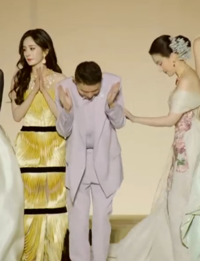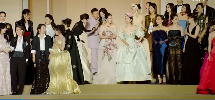 在最后大合影阶段,发生一则小插曲,总编刘冲挤进二人中间,还把刘亦菲裙子踩了,相关话题冲上热搜。