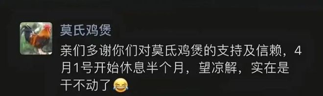 爆火之后,老莫全家陷入“地狱模式”:每天工作近20个小时,睡不到4小时,双手因不停砍鸡肿得发胀,女儿直接累病。老莫在后续采访中无奈地说:“我的生日愿望是希望店早点倒闭。”