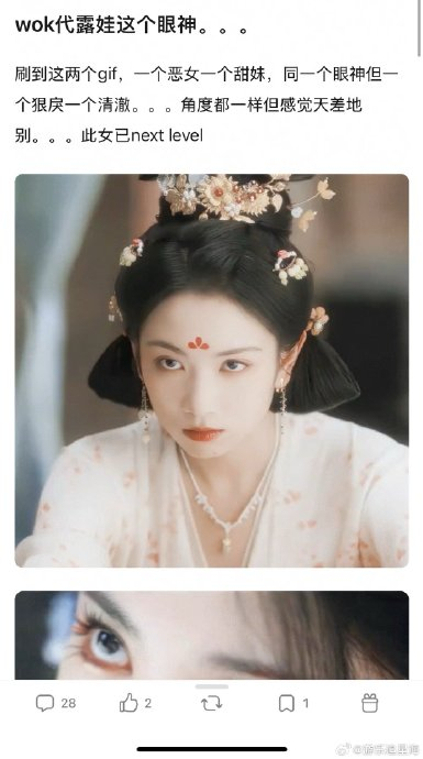 从茯苓的疯批美学到金宝珠的市井哲学,代露娃证明其能游刃有余穿梭于极端人设。观众评价她“换个造型换个人”,同一眼神可演绎狠戾妖君(茯苓)与清澈甜妹(阿念),演技层次分明。这种跨度源于对微表情的掌控:茯苓的癫狂靠嘴角抽动传递杀意,而金宝珠的市井机灵藏于挑眉撇嘴的微动作中。