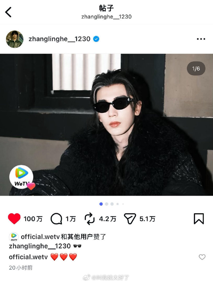 张凌赫ins发布仅20个小时点赞破100万,已经是张凌赫第5条ins百万赞,已经火出圈了吧?