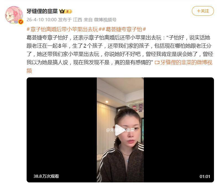 葛荟婕在直播里说得相当直白:“说实话她跟老汪在一起8年,生了2个孩子,还带我们家的孩子,包括现在哪怕她跟老汪分了,她还带我们家小苹果出去玩,你说她好不好吧。”这番话信息量不小,不仅确认了章子怡离婚后依然履行着“妈妈”的职责,更透露出葛荟婕本人态度的彻底转变。她坦言:“曾经我肯定是误会她了,曾经我以为她是搞人设,现在我发现不是,真的是有感情的。”