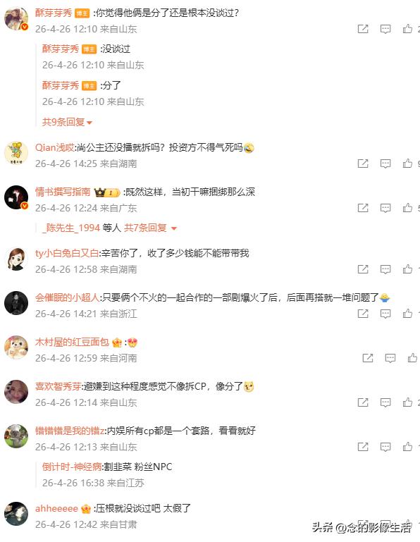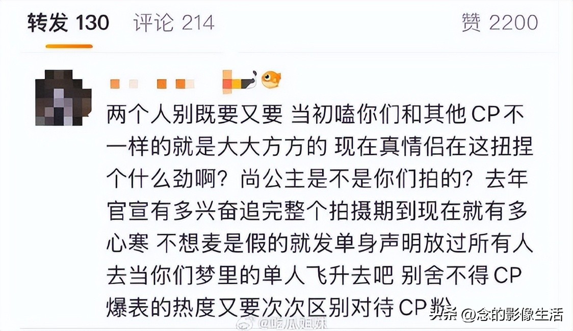 还有粉丝说,这两人既要又要,当初磕你们和其他CP不一样的就是大大方方的,现在真情侣在这里别扭什么啊?尚公主是不是你们拍的?去年官宣有多幸福现在看到你们这样就有多痛苦!
