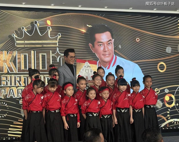 他的生日宴上,还有一群小朋友,穿着一样的服装,表演舞蹈,古天乐还表示:应该叫古叔叔或者古daddy。