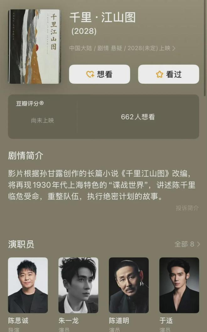 1. **天呐!**朱一龙和陈道明同台对决?这也太震撼了吧!这部电影是不是直接拉满了全网期待值?😱,2. **双影帝对决,硬核过瘾!**陈思诚执导,张冀编剧,顶配班底加持,吃瓜过瘾!🔥,3. **朱一龙和陈道明,两位影帝联手,谍战片又双叒叕爆表!**这部电影能不能直接封为今年最值得期待的影片?🎬,4. **顶配编剧、顶配导演,顶配演员阵容,这都太配了!**《千里·江山图》开机,吃瓜过瘾!🍿,5. **朱一龙玩反派?陈道明演正面?**这部谍战片的反派资源也太丰富了吧!🔫,6. **文咏珊和朱一龙再次携手,默契度直接拉满!**这对二搭演员,真的太让人期待了!💃,7. **张子枫也进军谍战片?**这部电影是不是直接拿走了全网演员资源?🎭,8. **“鲲鹏计划”级别的制作,1:1复刻老上海,美学值爆表!**这部电影是不是直接封为国产影史经典?🎧,9. **拍摄周期90天,7月杀青,2027年春节档上映,这波节奏太紧了!**吃瓜过瘾,期待值爆表!🎬,10. **顶配班底、金牌剧组、获奖原著,吃瓜难住!**《千里·江山图》开机,直接拉满全网期待值!🔥1. ,“双影帝PK?朱一龙陈道明同台,直接看出谁是国民党,谁是共产党,绝对看不完!” ,——小明爱看剧 ,2. ,“顶配班底全在线?文咏珊、张子枫、于适加盟,演员阵容能不能平衡好剧情深度?” ,——影迷少女 ,3. ,“1933年的上海,复刻老上海,精度1:1?这也太细节了吧,能不能拍出青绿山水画感?” ,——老上海爱好者 ,4. ,“朱一龙首次主演硬核谍战,陈道明演大反派,两人PK谁更会演演员?” ,——剧迷日记 ,5. ,“金牌编剧张冀执笔,改编茅盾文学奖原著,剧情拉满,能不能把小说元素翻译成电影?” ,——文学爱好者 ,6. ,“开机现场无野鸡营销,路透直接冲热搜,剧组是不是太专业了?别怕,拍得好就是好!” ,——影迷党 ,7. ,“朱一龙的陈千里和陈道明的叶启年,谁更有眼光?陈千里隐忍,叶启年狠辣,直接看出谁是主角!” ,——角色扮演爱好者 ,8. ,“90天拍摄周期,7月底杀青,2027年春节档上映,能不能避开大片灾难?” ,——票房控 ,9. ,“电视剧和电影完全不同团队,同名小说改编,哪个更配得上经典?” ,——剧迷对话 ,10. ,“顶配演员加金牌编剧,制作规格高,能不能把原著的复杂剧情拍得通透?” ,——吃瓜老手