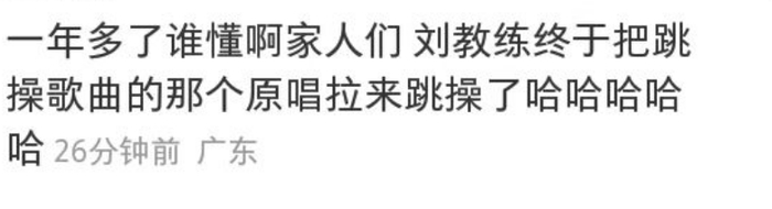 对此,不少网友也表示真的是“活久见”系列,没想到跳操曲的原唱者真的被刘教练拉过来跳操了!