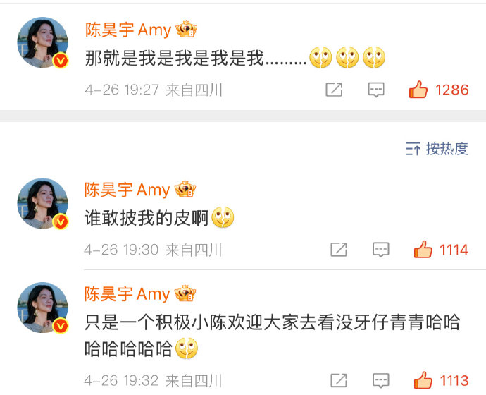 陈昊宇的一句“谁敢披我的皮啊”在2026年4月26日引爆微博热议,网友直呼“爆笑”,并掀起关于她如何知晓网络流行语“披皮”的有趣讨论。