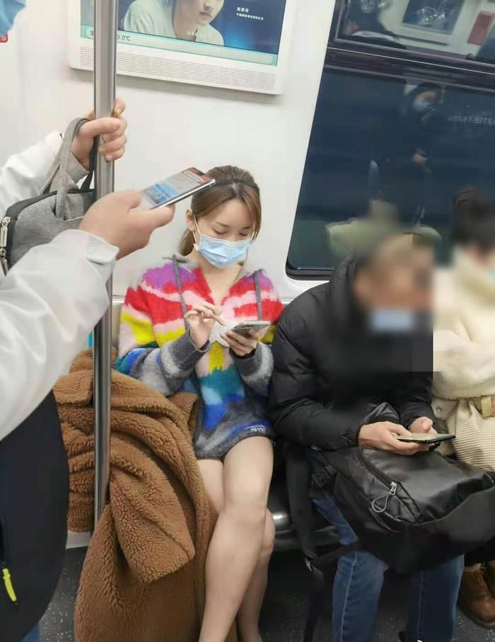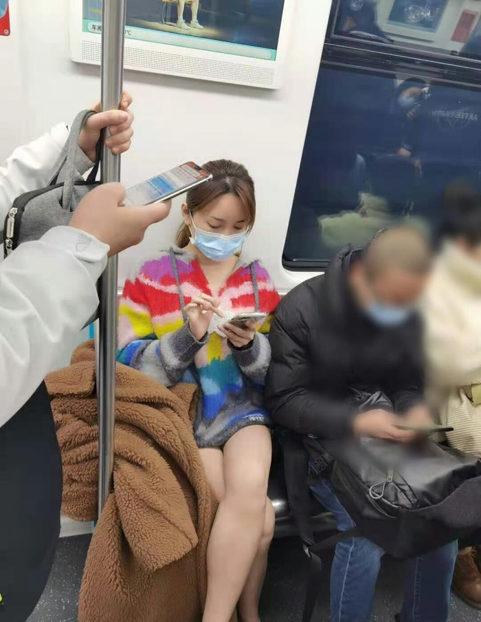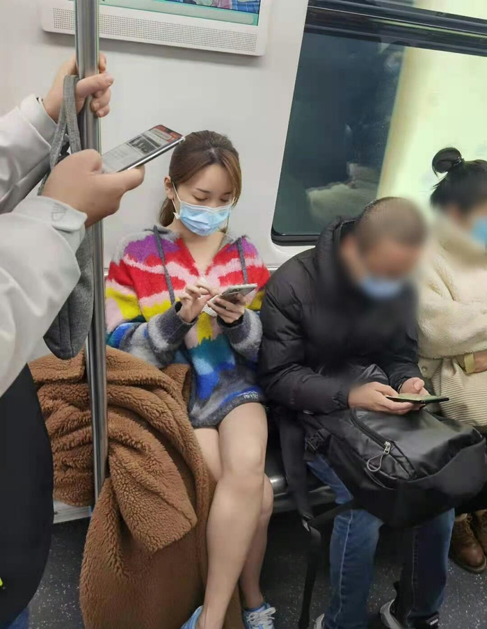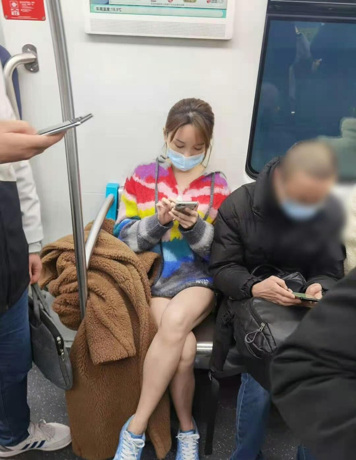 2021年2月金莎在上海地铁被路人偶遇,好美