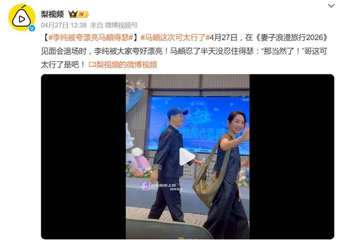 事情是这样的。4月27日,在《妻子浪漫旅行2026》的见面会退场时,现场路人被李纯的颜值直接“击中”,二话不说当场开夸:“好漂亮啊!”这话一出,本来在旁边假装淡定的马頔,愣是忍了半天没忍住,临走时直接破功。他转头扬眉,嘴角根本压不住,脱口而出:“那当然了!”笑声里透着100%的骄傲,就差当场跟路人拍胸脯盖章了。