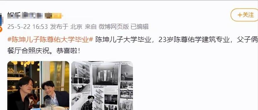 2025年,他正式大学毕业,父亲晒出合照,两人并肩而坐,笑容灿烂,像兄弟一样亲密。