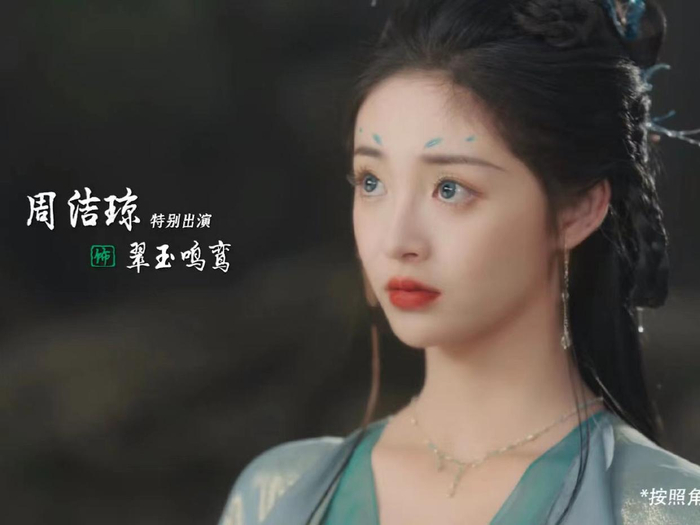 还有周洁琼扮演翠玉鸣鸾,衣裙也是翠绿色,额间有绿色印记,或狡黠或温柔,这模样太迷人。