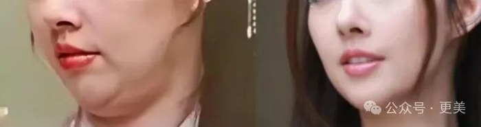 如果说苹果肌垮塌是显老,那肥大模糊的下颌线、双下巴,就是最显胖的细节,只要出现一点,就会有增肥十几斤的既视感。