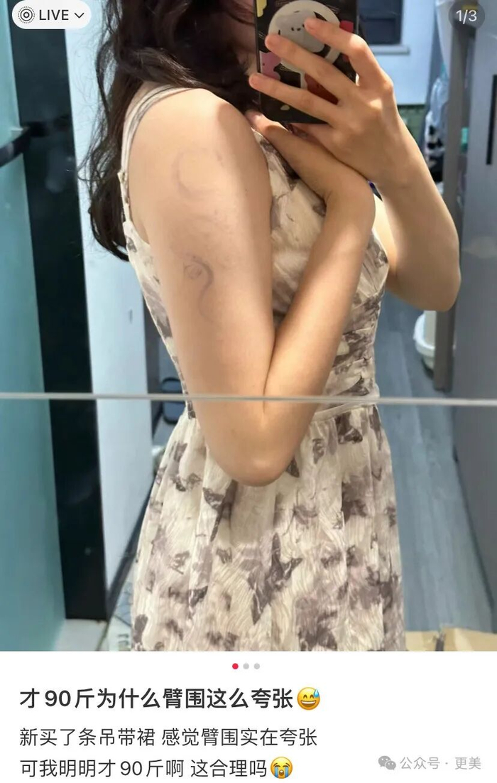 大多数人最容易胖的地方是胳膊,蝴蝶袖、拜拜肉很难甩掉(胸大的人更容易堆积)。