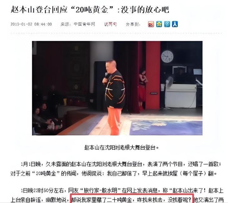 一条消息以惊人的速度刷遍各个平台:赵本山涉黑被抓,家中抄出40000斤黄金,折合20吨,按当时金价约值80亿。