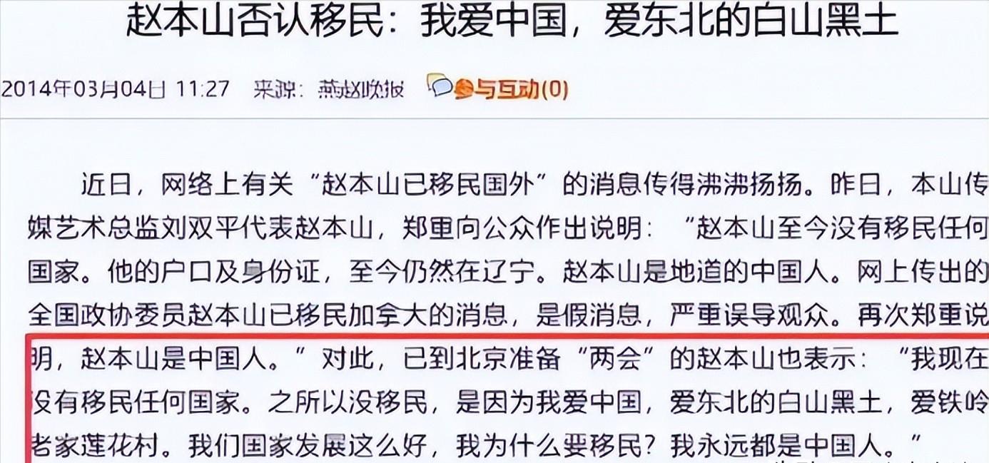 同年,辽宁省政协办公厅专门受全国政协委托,前往辽宁省出入境管理局,对赵本山的国籍和出入境记录进行了专项核查。