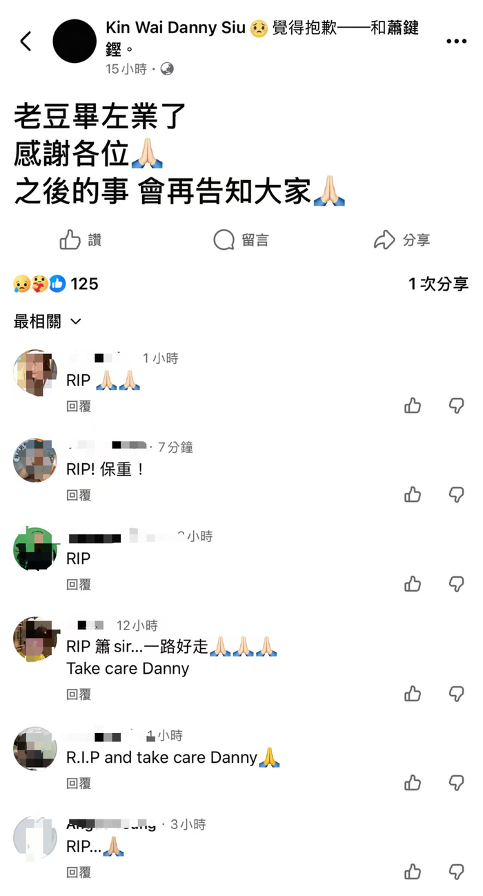 香港资深影视制作人萧键铿于4月8日因病离世,享年73岁。其子萧键炜在社交平台公布噩耗:“老爸毕业了,感谢各位,之后的事,会再告知大家。”